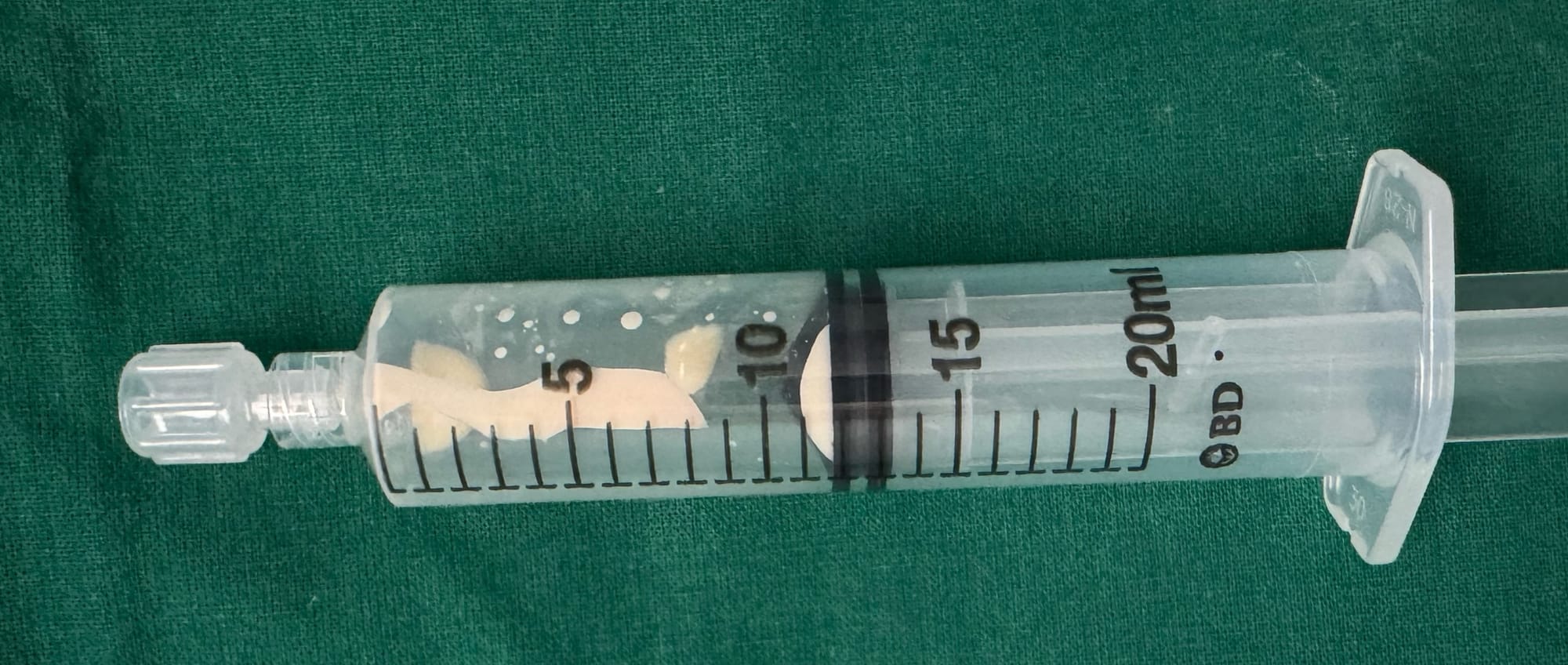 The biopsy was performed with an 18G BARD coaxial gun. Milky fluid was aspirated, which confirmed the diagnosis.