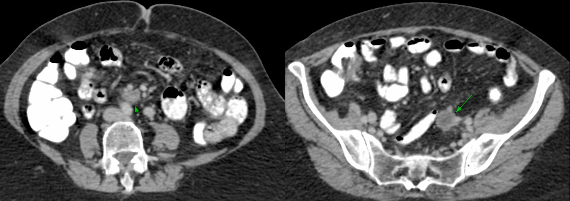 A 69-years old treated earlier for carcinoma ovary and endometrium, presented with new mesenteric nodules/nodes.