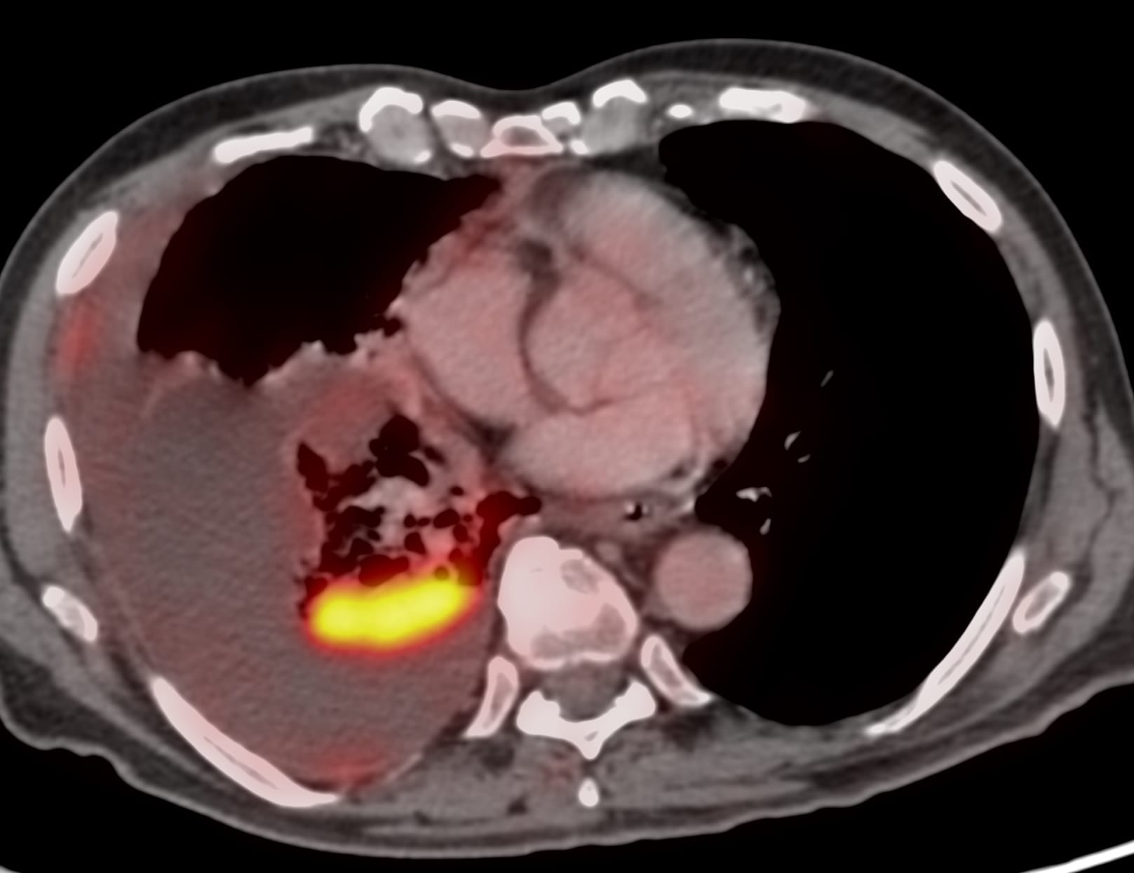 Case 15: 71-years old 40-plus pack years history smoker with non-resolving pleural effusion and an opacity in the right lower lobe